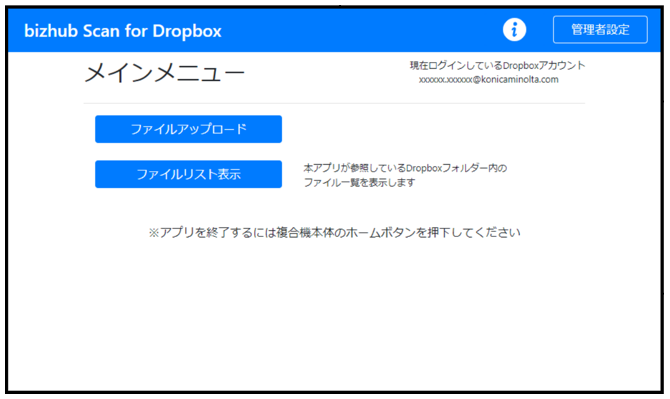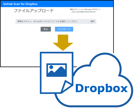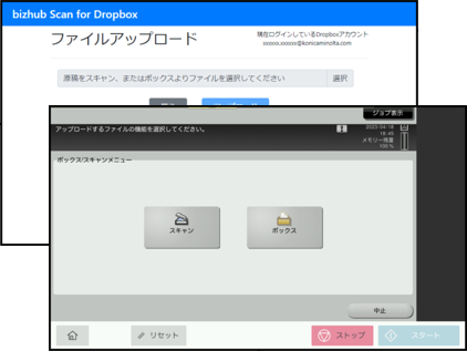 本機の操作パネルからDropboxへ接続し、スキャンファイルをアップロードできます。