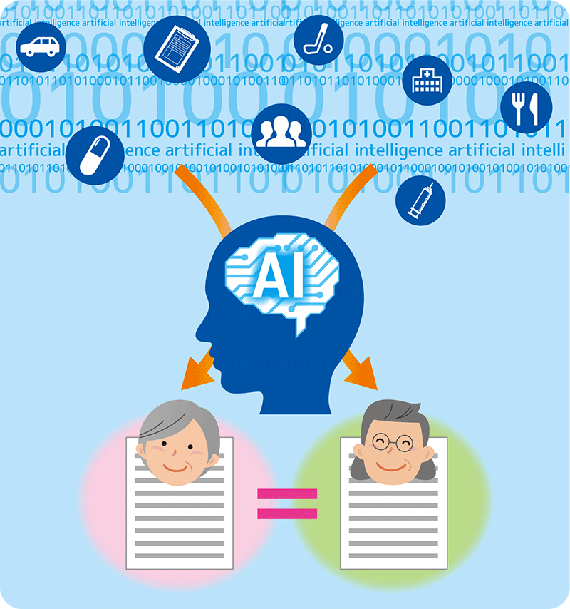 AIケアプラン実装による適切なプラン作成の支援と業務効率化をサポートします。ケアマネージャーがADL・IADL、認知症状等の将来予測、自立支援のためのサービスプランを参照することができ、自立支援・重度化防止を考慮したケアプランの作成を支援します。