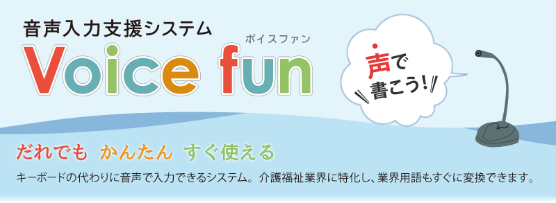 キーボードの代わりに音声入力できるシステムです。介護福祉業界に特化し、業界用語もすぐに変換できます。