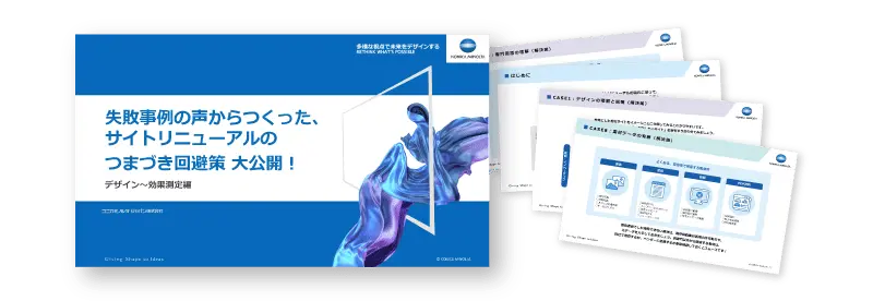 コニカミノルタジャパンでは実際にあった実例をもとに、「Webサイトリニューアルで頻出するつまずきポイント」と「不安を回避する方法」をご紹介しています。Webサイトの技術的な面ではなく、社内でリアルに起きやすい失敗事例をまとめています。
