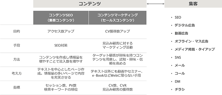 まず、コンテンツには2種類あり、それぞれ目的や手段が異なります。