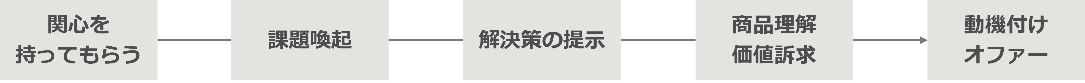 「興味を持ってもらい→潜在的な課題に気づいてもらう→それが商品やサービスで解決できることを示し→オファーで行動を喚起する」