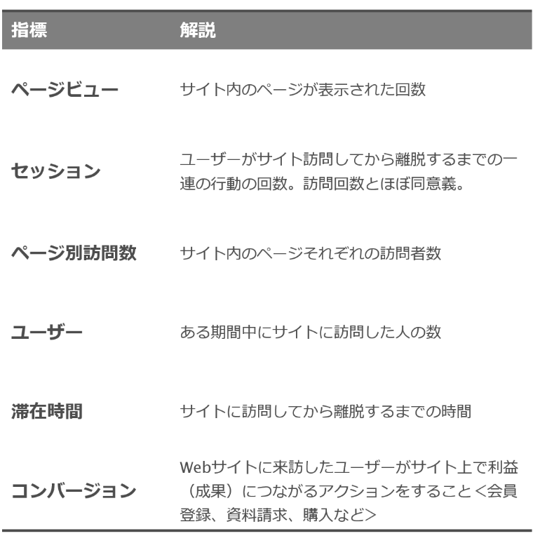 Googleアナリティクスではさまざまな指標を使って解析を行います。