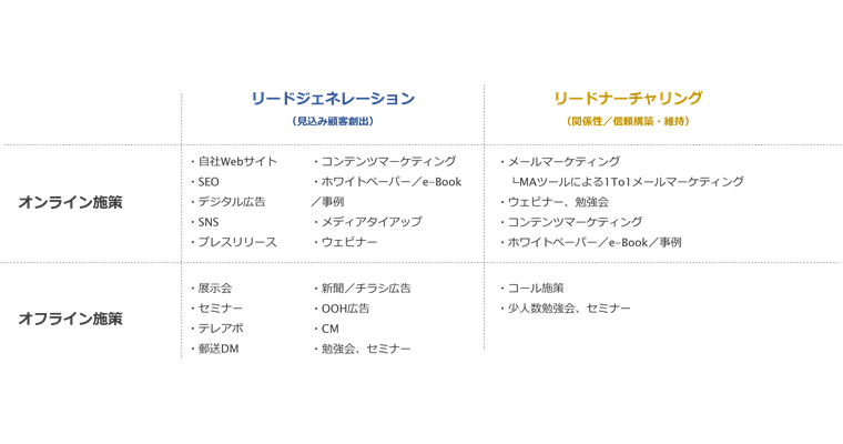 リードジェネレーション施策のプランニングに必要なことをまとめると、下記の通りです。