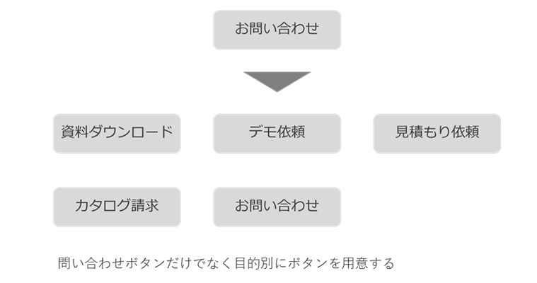 一方で、「見積もり依頼」というフォームであればネガティブに捉えられる心配はありません。目的別にボタンとフォームを用意しておくことで、顧客のニーズに細やかに対応できます。