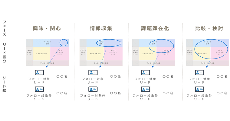 そのため当社では、顧客の検討状況で区分したあとに、ターゲット企業・リードかどうかを見分けるようにしています。