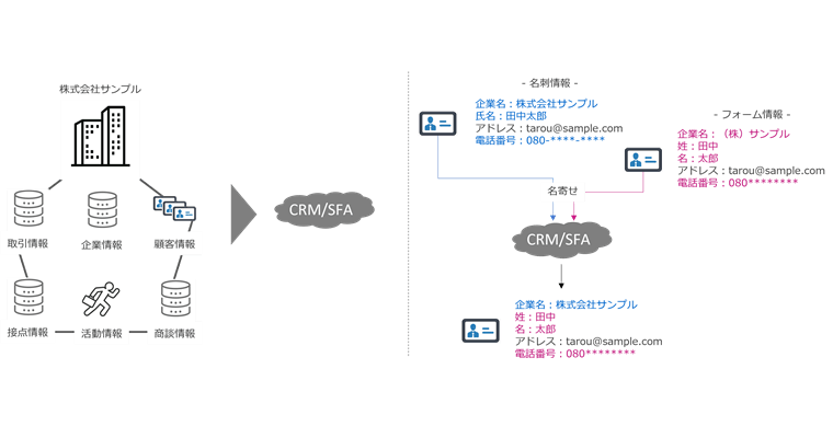 このような情報を抽出するには、企業単位や顧客単位で取引情報や接点情報、活動情報、商談の内容などが蓄積・閲覧・更新できるデータベース(CRM / SFA)が必要になります。