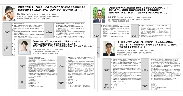 例えば、当社のマーケティングサービスの事業では、提供サービスに応じてペルソナを作成しています。