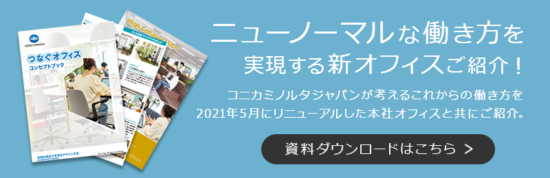 コニカミノルタジャパンでは、新しい働き方を検討するお客様へ、ニューノーマル時代の理想の働く環境を実現するオフィスデザインをトータルでサポートする「Office Right Sizing」サービスをご提供しています。