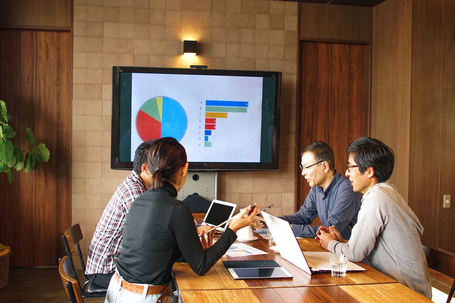 ペーパーレス会議では紙の資料を電子データに置き換えPCやタブレット、プロジェクター投影などで共有します。さらに「紙に縛られた働き方」から開放されることで、遠隔地から参加するリモート会議も可能になります。