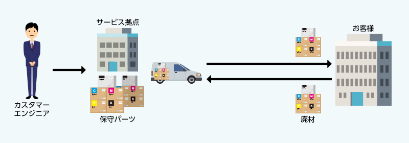 こうすることで、必要な保守パーツが必要なときに、お客様の元へ届くようになっているのです。