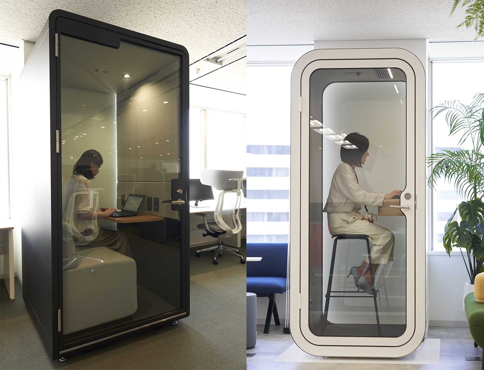 コニカミノルタジャパンではテレワークとオフィス出社のハイブリッドな働き方を推進しており、ニューノーマルの働き方を実現するオフィスとして「つなぐオフィス」があります。つなぐオフィスにはオフィスにしか叶えられない機能を様々あり、オンライン商談に最適なWEB会議BOXも用意されています。自宅だと周囲の音や映り込み、照明の明るさが気になる、という社員からは、WEB会議BOXを利用して快適にオンライン商談ができたという声も上がっています。オフィスに出社することにはなりますが、オンライン商談には有効な設備であり、今後のオフィスづくりの際に検討してみるのも良いでしょう。