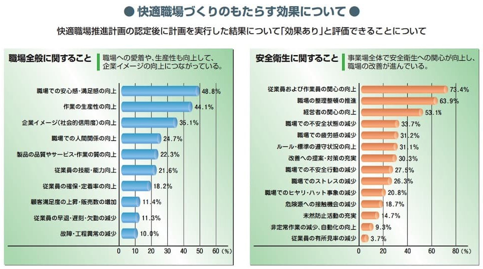 こうした「快適職場指針」の取り組みによって、職場全般と安全衛生両面で効果が表れます。