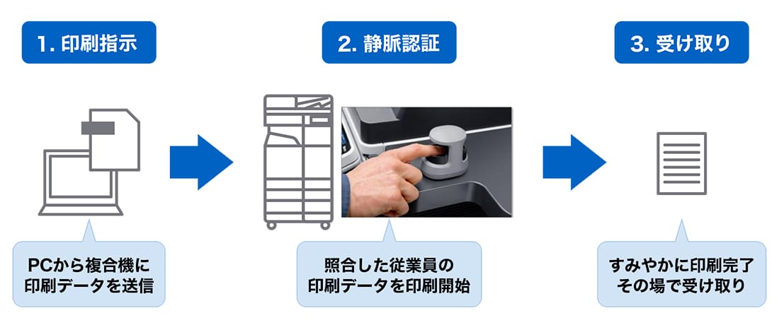 指先をかざして認証完了!自分の印刷物を即時プリント!