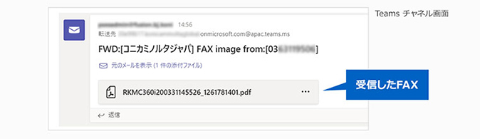 - 複合機からTeamsのチャネルに直接FAX転送することで、受信したFAXをすぐに確認できます。
