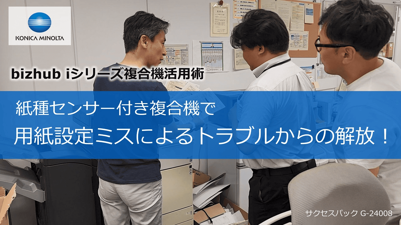 複合機は、使われる様々な紙で最適な印刷ができるよう、紙の厚さや種類に合わせて設定を変える必要があります。その設定を変え忘れやミスしてしまうと、上手く印刷ができず、最悪の場合、機内を汚してしまうこともあります。機内清掃が必要になるとサービスエンジニアの訪問を待つしかありません。コニカミノルタの複合機に搭載されている紙種センサーは、トレイから送られてきた紙の厚さと色を瞬時に自動検知!機内汚れ等の心配はなくなります。
