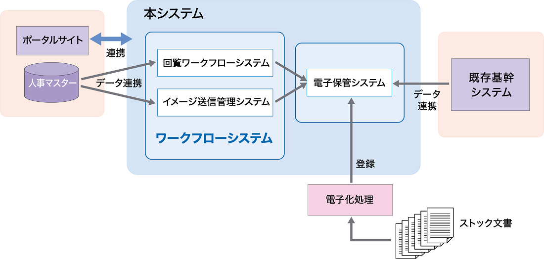 - 既存の社内システムに連携する文書管理ワークフローシステムの導入により、業務プロセスの中に紙でのやり取りが発生しないペーパーレス業務を実現