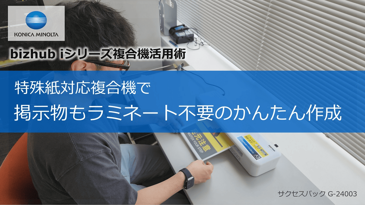 様々な関係者が出入りする建設現場では、特に提示物作りは大変です。野外用には防水処理が必要ですが、ラミネートは印刷以上に時間を要します。耐水性の特殊構造を持つ「ラミフリー」は、コニカミノルタの複合機で試験済み「お役立ち用紙」は会員専用のオフィス用品ストア「bizconcie」からご購入いただけます。10,000点以上のテンプレートや素材を掲載する「Tool bizhub」は会員専用のコンテンツサイトです。これさえあれば、原稿の素材探しも手間取りません。掲示物の原稿もサクサク作成・印刷できる、お客様の業務用途を理解した複合機を提供するコニカミノルタならではのご提案です。