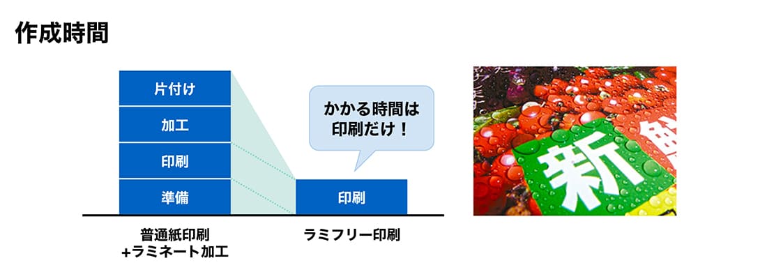 - 色々な媒体に印刷できる多機能カラー複合機と耐水紙を組み合わせれば、屋外掲示物の作成時も印刷するだけ!ラミネーターが不要に
