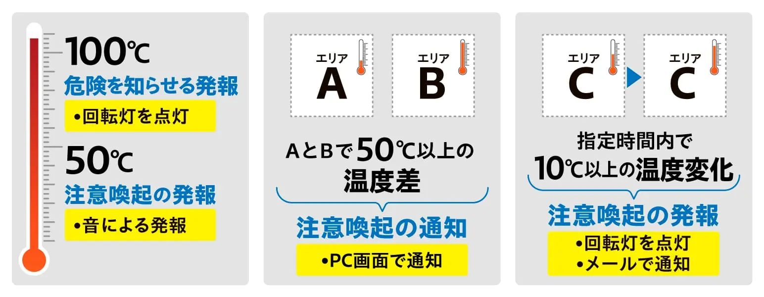 加えて、閾値を設定することで、常温環境下での通常加熱と、リスクを伴う異常熱上昇とをリアルタイムで識別できるようになっています。これにより、誤報の削減だけでなく、初動対応の信頼性も飛躍的に向上します。
