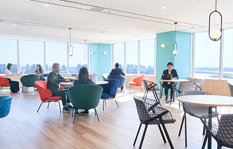 対面式の会議にデジタルを活用して創造性や効率を高める仕掛けや、オフィスでの様々な業務内容に合わせて席を選べる「行きたくなるオフィス」で働き方の質を向上!