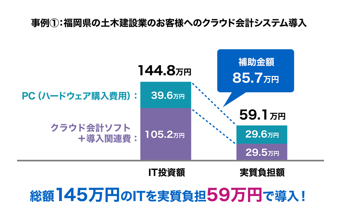 | クラウド会計ソフト+導入関連費 | 105.2万円 | 75.7万円 | 29.5万円 |