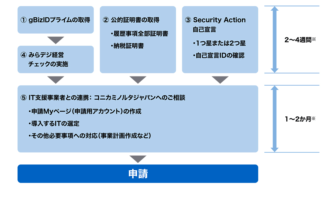 これ以降の工程はIT支援事業者との連携が必要です。ぜひ、コニカミノルタジャパンまでご相談ください。