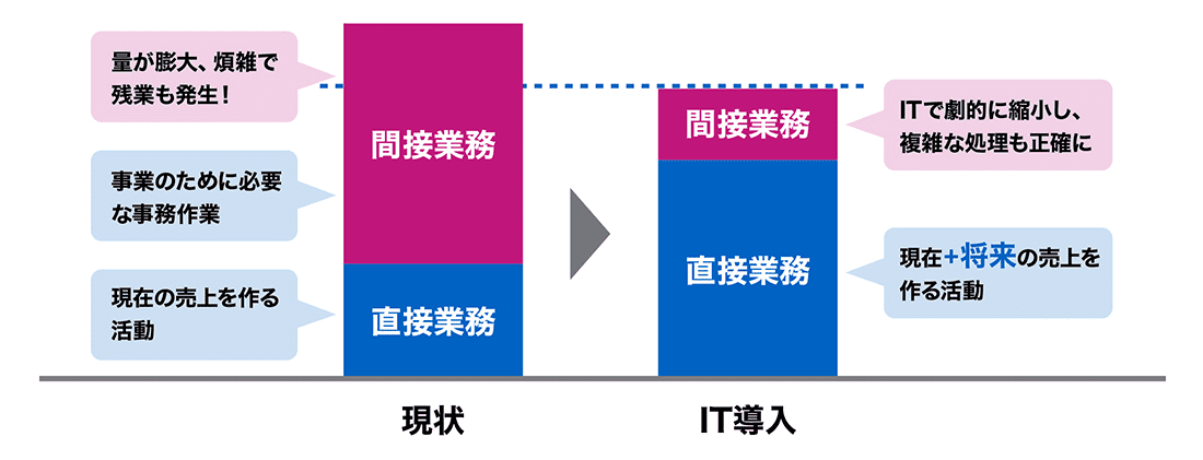 IT導入で企業が最初に実感する効果は、間接業務の大幅な時間短縮