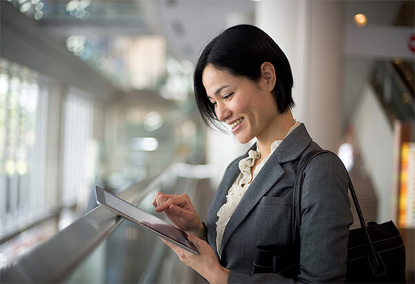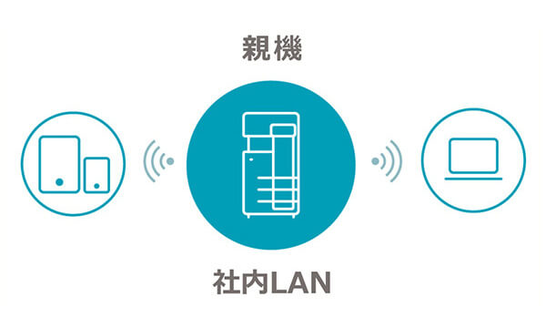 コニカミノルタの複合機は、NFC対応のスマートフォンをかざしてプリントデータを送信可能。また、社内LANとは異なる独立したWi-Fi環境を提供。タブレットやスマートフォンから安全かつ気軽にプリントジョブを送付することができ、お客様を待たせることのないフレキシブルな商談を支援いたします。
