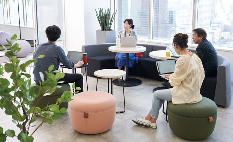 我々コニカミノルタジャパンは、テレワークやオフィスを柔軟に活用したハイブリッドな働き方を実践しています。