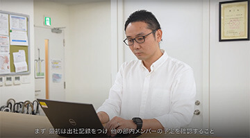 - 勤怠管理専用アプリを使うことで、いまオフィスに居ない従業員が出張、在宅勤務、休暇のいずれなのかを一目で把握