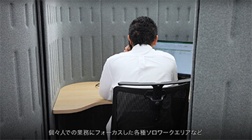 - 集中、コラボレーション、休憩など、多目的のエリアが連続する多様なワークスペースで働く個人の意思を尊重
