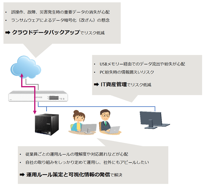 データとIT資産を的確に保護、管理することでリスク低減を図ります。