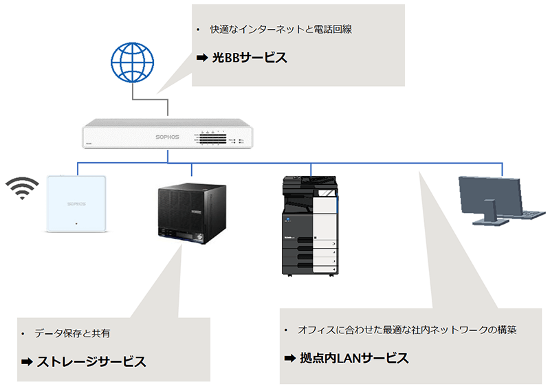 コニカミノルタジャパンでは、光回線や拠点内の有線LAN、ストレージサービスもご提供しております。