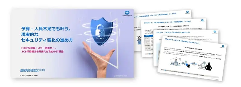 コニカミノルタジャパンでは、中小企業が現実的に取り組めるセキュリティ強化をまとめたホワイトペーパーをご用意しました。「100%の防御」ではなく、侵入を前提とした「回復力(レジリエンス)」を高めるための具体的なステップや、コストを抑えた対策手法について解説しています。ぜひダウンロードして、自社のセキュリティ対策にお役立てください。