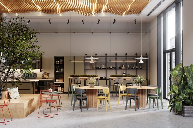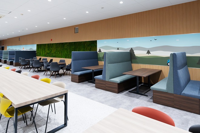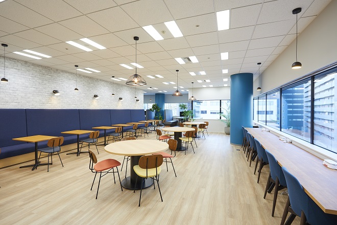 社員食堂・リフレッシュスペースのレイアウト事例を2つ紹介します。各社が工夫しているポイントを参考にしながら、社員食堂のデザインやレイアウトを検討しましょう。