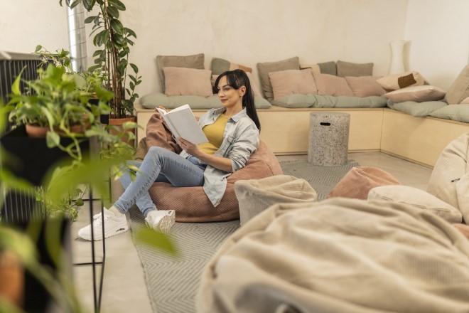 この事例のように、リラックススペースを設置する際には採光や調光も重要なポイントとなります。できるだけ明るく開放的な空間になるよう、日当たりや方角なども検討事項に加えておくとよいでしょう。