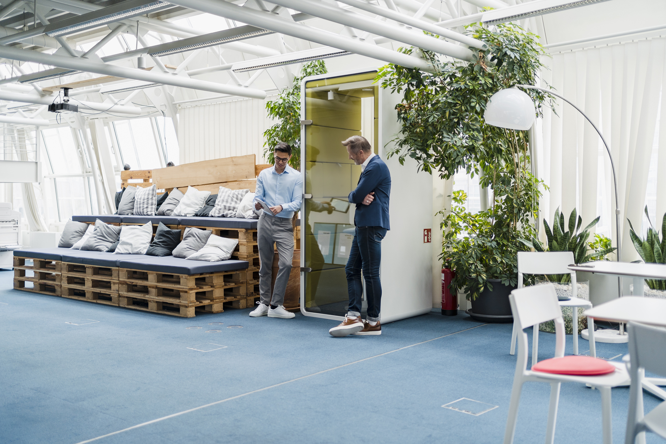 周囲に壁ができることでブース外の音が内部に聞こえにくくなる他、ブース内での電話やWeb会議の声が周囲に聞こえにくくなる効果が期待できます。防音性の高さはクローズ型>セミクローズ型>オープン型の順です。個室が少ないオフィスや、Web会議の頻度が高い職場においては、個室ブースの設置を検討してみるとよいでしょう。