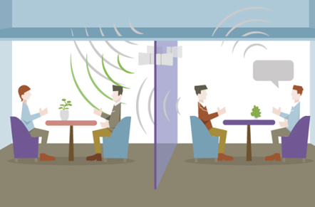 たとえば、パーティションで区切られている会議室において、隣室の話し声が気になるケースは少なくありません。スピーチプライバシーシステムを活用することで、新たに壁を設置したりパーティションを取り替えたりすることなく、手軽に音漏れを防止できます。