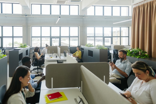 周囲の視線を適度に遮る工夫として、パーティションを設置する方法が挙げられます。座った状態で視線が遮られる程度の高さのパーティションを活用すれば、閉塞感や圧迫感がなく、集中しやすい環境を提供できるでしょう。