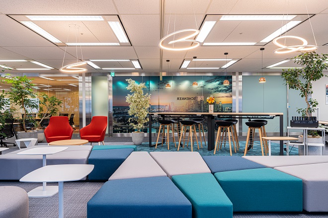 出社とテレワークを適宜使い分けるハイブリッドワークを実現しつつ、従業員のエンゲージメントを高めるABWオフィスを構築した事例です。アイスブレイクが可能なフリースペースのほか、カジュアルなコミュニケーションを交わしやすいエリアなど、柔軟な働き方を支援する工夫が取り入れられています。各スペースを従業員が自由に行き来しながら働けるよう、シームレスな空間に仕上げました。従業員の自主性・自律性を重んじるオフィスの事例といえます。