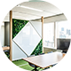 楕円型のビルの特徴を生かしたレイアウトやデザインを行いました。エントランスは丸みをつけて奥行きを出し、訪れるお客様をより中へとお迎え出来る空間としています。執務室は壁をなくした開放的なプランで、何種類ものコミュニケーションエリアにグリーンを使ってスポットを当てています。明るく活気溢れるオフィスとなりました。