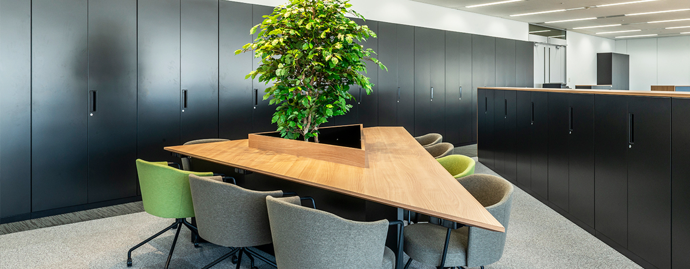 本社オフィスはスペースの割に人員が多いため、環境として良好とは言えず、会議室が常に満室状態。今後の成長戦略を担うようなビジネスの新しいソリューションを生み出せるオフィスを構築したい。