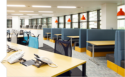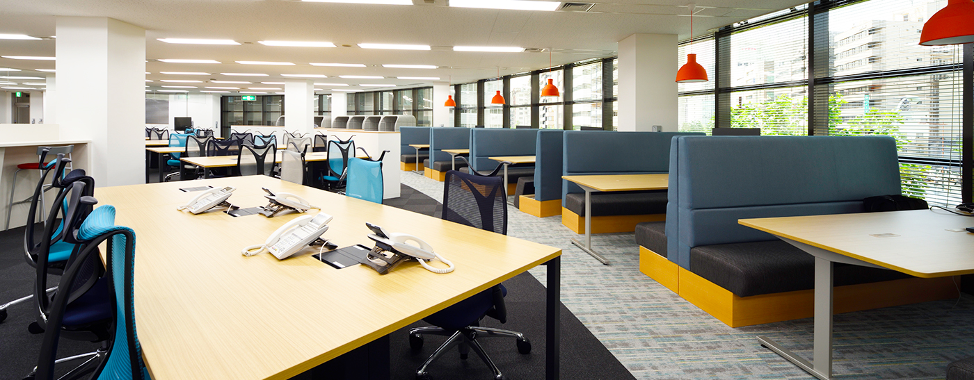 フリーアドレス化し、自然に交流が生まれる執務スペースに