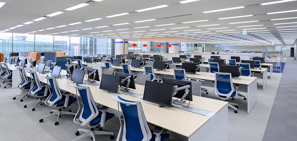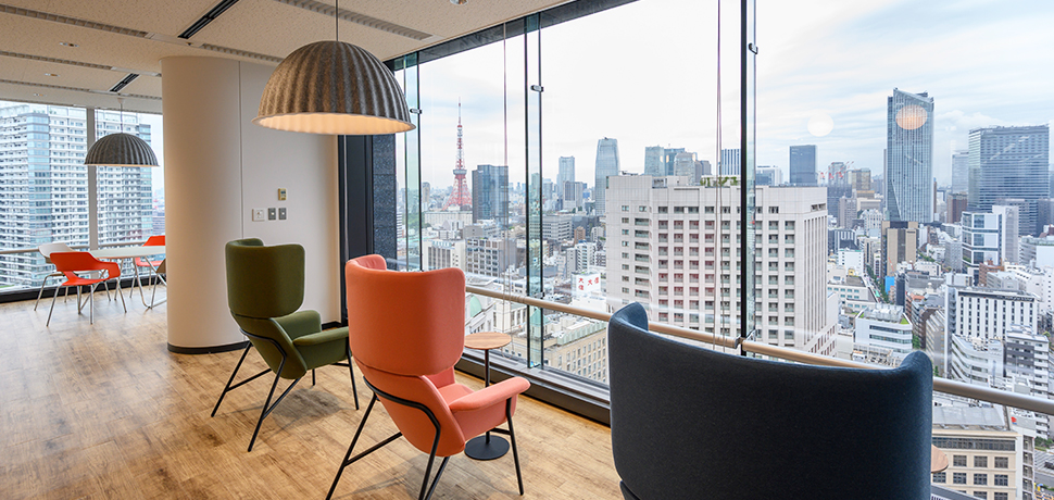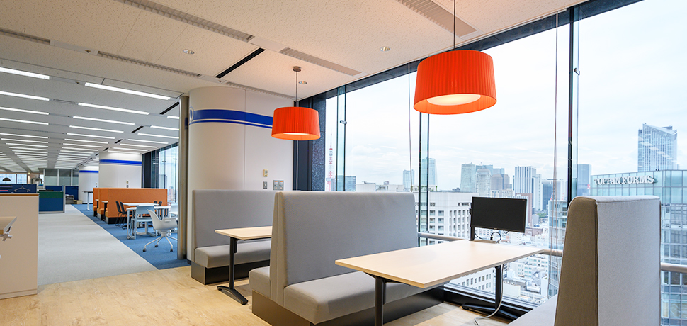 社員の皆様がどのような働き方をしているのか、どのようなワークスペースが望ましいのか、社員参加型のワークショップを開催しアイデアを集めました。そうした中から発掘されたキーワードは「コミュニケーションの活性化」と「リフレッシュ」。上席ひな壇、島型対抗式のレイアウトからグループアドレス、オープンミーティング、ソロワーク、コラボレーションエリア、リフレッシュエリアなど様々なエリアを配置。自由なコミュニケーションとコラボレーションが産まれる空間を設計しました。