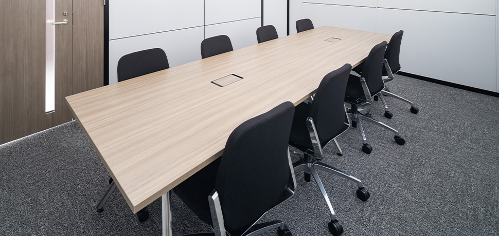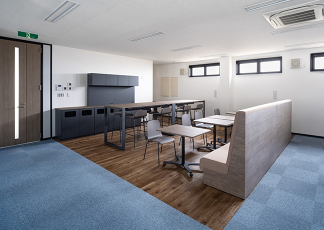また、倉庫の環境とはメリハリをつけ、オフィスは木目調のシックな色合いで落ち着きある雰囲気とポップで明るく会話が弾むデザインが上手く融合した空間に仕上げました。
