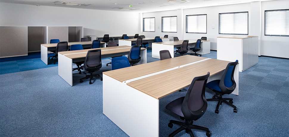 社員のモチベーションアップ、そして社員数増員に対応できる環境を目指し、新設した倉庫一体型オフィスへ移転しました。