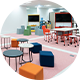 プログラミングデザイン・タスクフローから導いた“顕在的・潜在的” な社員の声をより効果的に反映できるようデザインしました。グループアドレスエリアやABW エリア(コラボレーション、集中、リラックス)を設け、色味や設えにも工夫を凝らすことで活動を促し、明るくイキイキと働けるオフィスへ仕上げました。