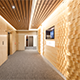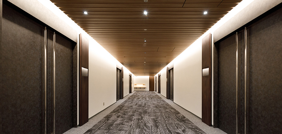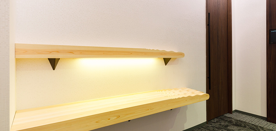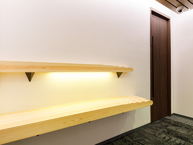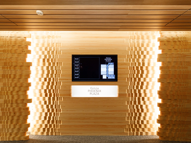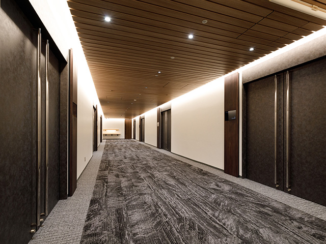時代の変化に合わせてデザインや機能性の向上を目指し、貸会議室エレベーターホールおよび廊下を全面リニューアルしました。紙業界のセンター的立場から木材とのあゆみをテーマにデザイン性を高く保ちつつ、サイネージも設置したいというお客様のご要望を踏まえ、かつ1週間という短工期の中、デザイン会社や設計士と密に連携を取り、スケジュールに遅れることなくプロジェクトを完遂しました。また、貸会議室という仕様に合わせ、照明は用途に応じて雰囲気を変えられるよう4種類の色合いを導入し、利用者の満足度を高める、高品質でぬくもりある空間を実現しました。