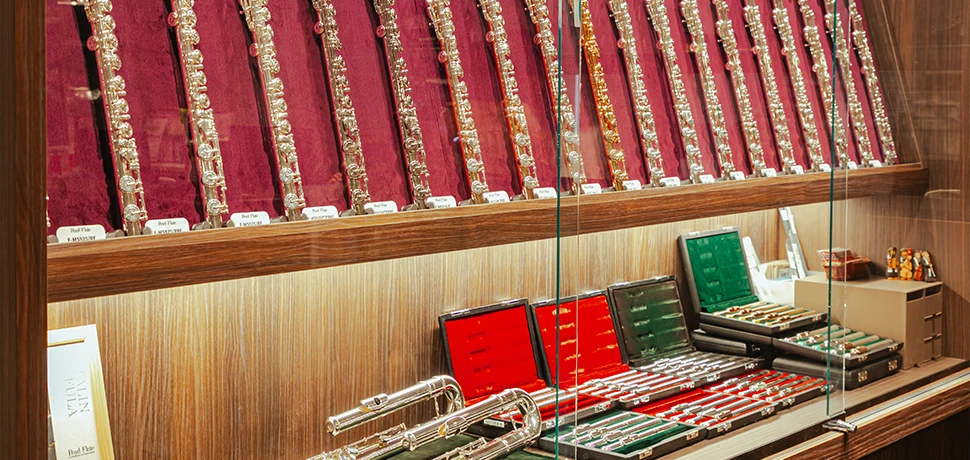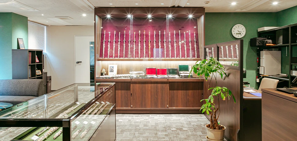 フルートの販売・修理・レッスンを行うショールームをはじめとしたお客様エリアの拡充を目指し、オフィススペースと接客スペースのリニューアルを実施しました。